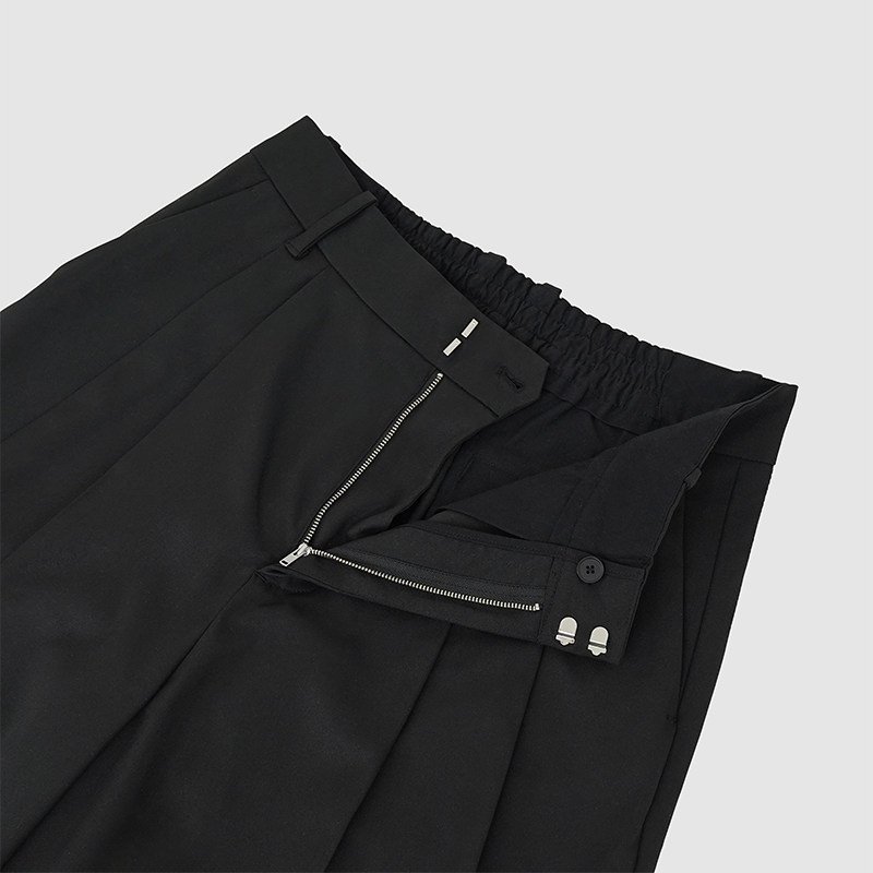 ・深く、縦に長いツータック仕様。腰元に奥行きが出るうえ、パンツの縦ラインを強調。